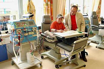 Elke dinsdag, donderdag en zaterdag worden op de afdeling nierdialyse Thomas’ nieren gespoeld. Zijn eerste examens waren op maandag en woensdag, dus kon hij deze op school maken. Maar donderdag ging dat helaas niet. Zijn leraar kwam met gesloten envelop met de opgaven economie de ziekenzaal op.