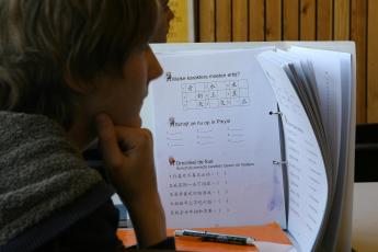 Docent Tsui zet er aan het begin van het blokuur Chinees stevig de vaart in. „Jongens, boeken op tafel. Irene, lees jij de eerste zin van bladzijde 111 eens op.” Even tuurt de tiener naar de tekens in haar boek. Dan zegt ze een zin in onvervalst Chinees. Het klinkt bijna zangerig, zo beklemtoont Irene de intonatie in haar zin. Haar buurvrouw neemt de vertaling voor haar rekening. „Ik hou heel erg van basketbal.”