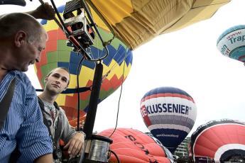 Donderdagavond rond zeven uur kreeg Sven te horen dat de vlucht doorging. Het was even zoeken naar de voor hem bestemde luchtballon. Tientallen ballonnen stonden op het terrein klaar om op de tweede dag van het ballonfiësta Overijssel de lucht in te gaan.