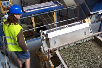 Gelukkig staat de fabriek vol met machines die dat werk van de mensen hebben overgenomen. Een magneet haalt het ijzer en het blik eruit en een stofzuiger blaast het papier en plastic weg. Een ander vernuftig apparaat stuurt een laserstraal door de scherven heen. Als die niet erdoor gaat, is de scherf niet van glas en wordt hij eruit gepikt.