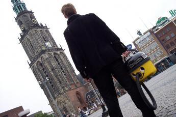 Na een uur te hebben rondgedwaald op de markt en minstens vijftien keer hetzelfde verhaal te hebben opgehangen, is het tijd voor de verslaggever een andere aanpak te kiezen. De eerste winkels in het centrum van Groningen openen hun deuren. Bij restaurant Bommen Berend zitten vroege dagjesmensen al op het terras. Maar de dame die achter een glimmende gebaksvitrine staat heeft geen klusje.