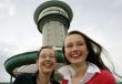 De 50 meter hoge toren van hotel-restaurant De Koperen Hoogte rijst als een reus boven de snelweg uit. Het restaurant ten noorden van Zwolle is letterlijk en figuurlijk een gebouw waar de zussen Claudia (16) en Eline (17) Geneugelijk uit Staphorst tegen opkijken. Claudia: „Als je binnenkomt, word je gewoon duizelig van de balkons en de luxe.”
