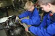 Leerling Machiel staat gebogen over een groot cilinderblok van een Toyota. Hij duwt een metertje in een cilinderkop. „Hiermee controleer ik de uitslag van een cilinder.” Een medeleerling draait aan een knop op een bedieningspaneel. De motor lijkt tot leven te komen. Plof! Een dunne rookwolk komt uit het gat. Machiel knippert met z’n ogen: „Volgende keer moet ik de meter beter vasthouden.”