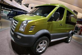 Iets verderop staat het busje van de toekomst, de Atacama. En voor wie nu al een opvallende bestelwagen wil is er de Mercedes Viano X-clusive CDI 3.0. Uitgevoerd in obsidiaanzwart metallic. Met zes leren stoelen. Prijs: bijna 54.000 euro. Exclusief.