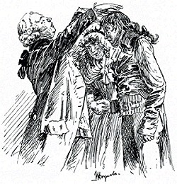 De regeering is van den zolder van het logement gedaald en trekt plechtstatig den dapperen overwinnaar te gemoet. De tamboers en pijpers van de burgerwacht slaan en blazen een fanfare, de klokken beginnen te luien en te beieren, vlaggen worden er uitgestoken en bloemen gestrooid, kortom Napoleon is nooit triomfantelijker Parijs binnengehaald dan mijn oom met zijn gevangene de stad, die hij immers door zijne edele zelfopoffering had behouden. En als nu de oproermaker onder het stadhuis is gebracht, met nog een paar die zich aan de andere ruiters hebben overgegeven, en mijn oom komt thuis, half suf van al de drukte en al de aandoening, wie staan hem dan in de apotheek af te wachten?... De heer van Putten en Annemietje! En de vader legt de rechterhand van zijn dochter in de rechterhand van mijn oom Pothof, en zijn eigen handen legt hij op hunne hoofden, en hij zegt: ’Jonge burger, tot loon voor uwe dapperheid geef ik u mijn kind en een derde in de affaire; als ik kom te sterven krijg jelui de rest.’