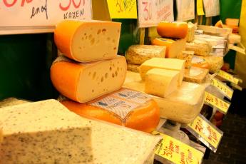 De drukte is zo groot dat twee bekertjes koffie koud staan te worden. Oude, jonge, belegen, kruiden-, komijnen-, magere en gatenkaas beheersen m’n gedachten. „Een kilootje oud, meneer? Momentje.” Omdat de temperatuur nog steeds onder die van een koelkast ligt, moet ik de harde -meestal oudere- kazen met een draadje snijden.