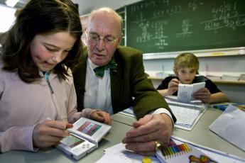 AMSTERDAM - Ademloos kijken de schoolkinderen toe. Hoeveel is 97 keer 13? Pats boem erbovenop geeft Willem Bouman het antwoord: „1261.” De 68-jarige Alphenaar demonstreerde woensdag zijn verbluffende hoofdrekenkunsten -een belangrijke vaardigheid tijdens de jaarlijkse Cito-toets- op de openbare Nicolaas Maesschool in Amsterdam.