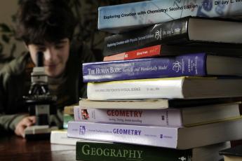 Met een enorme stapel boeken in zijn armen komt hij de deur van de woonkamer binnen. Elk honderden pagina’s dik, met klinkende Engelse titels als ”Geometry”, ”Human Body”, ”Physics” en ”Chemistry”. Geen schoolboeken, maar studieboeken. Bauke Stelma (12) uit het Friese Franeker gaat namelijk niet naar school. Nooit. Hij krijgt thuisonderwijs.
