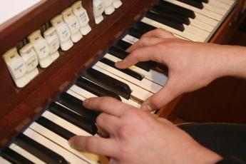 Paul bereidt zich altijd goed voor op de psalmen en gezangen die hij moet spelen. Een orgelboek heeft hij in de dienst niet meer nodig. „Als ik iets gehoord heb, kan ik het vrij snel naspelen. Dan hoef ik tenminste geen bladzijden om te slaan en orgelboeken te verwisselen.”