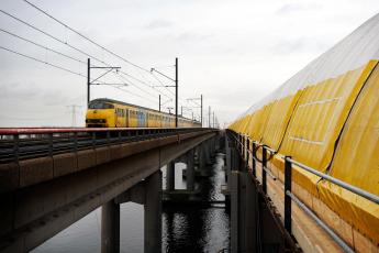 Baby valt tussen de rails