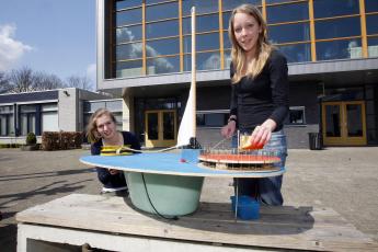 Een automatisch zeilsysteem dat ervoor zorgt dat de zeilen met de wind meedraaien. Vwo-scholieren Linda Kooijmans en Laura van Deursen (allebei 18) van het Gymnasium Beekvliet in het Brabantse Sint-Michielsgestel ontwierpen en bouwden het model.