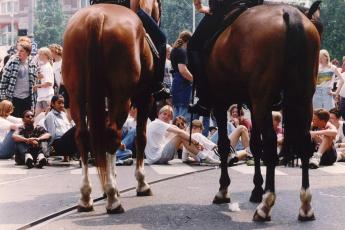 De Nijmegenaar trok eerst enkele malen aan de staart van het politiepaard en probeerde deze even later aan te steken. Agenten hielden de man aan.