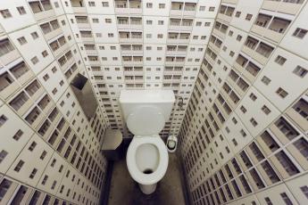 NIJMEGEN (ANP) - Een aankomend eerstejaars biomedische wetenschappen aan de Radboud Universiteit in Nijmegen is maandagavond pardoes uit een raam gestapt, toen hij op zoek was naar de wc.