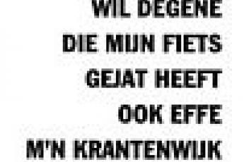 | aantal posts:2078 | Een fietsendiefstal hoef je inderdaad niet te pikken. Je moet de fiets pikken..... | |