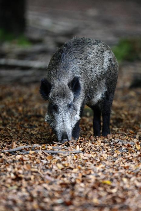 Een boswachter ziet wild zwijn aan voor auto. - Foto ANP