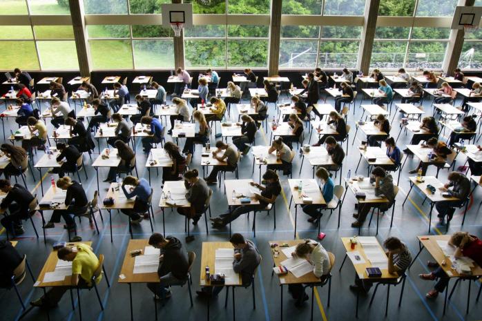 DEVENTER - Overzicht van de gymzaal tijdens het schriftelijk examen Nederlands 2008 voor VWO op het Etty Hillseum Lyceum in Deventer. - Foto ANP