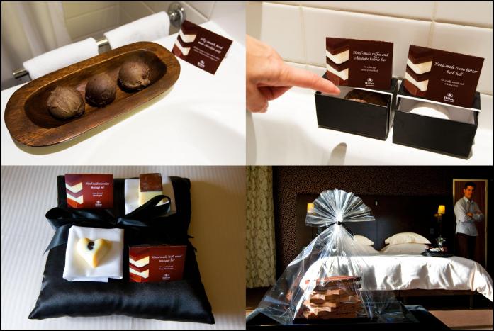 AMSTERDAM - Chocolade zeep, chocolade shampoo, chocolade reep om mee te masseren en de chocolade kamer. - Foto ANP