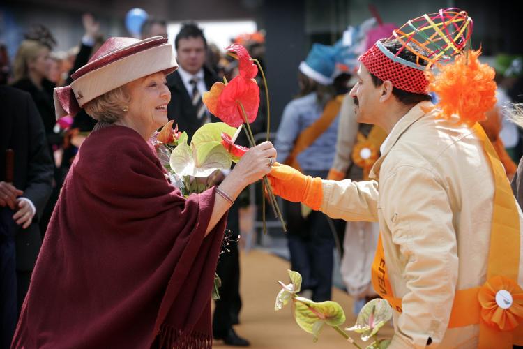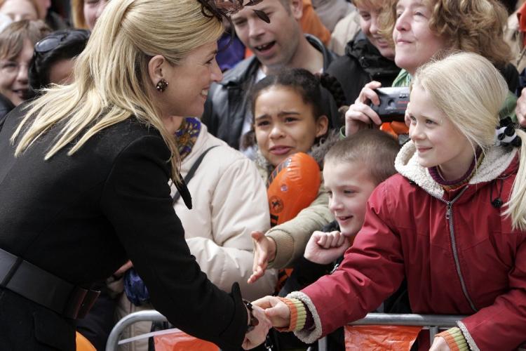 Prinses Máxima neemt in Zeewolde alle tijd voor een gesprek met een meisje. - Foto's Anton Dommerholt en Sjaak Verboom