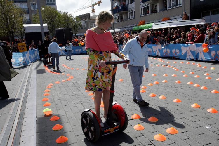 De zwangere prinses Laurentien waagt zich in Almere op een speciale tweewieler.