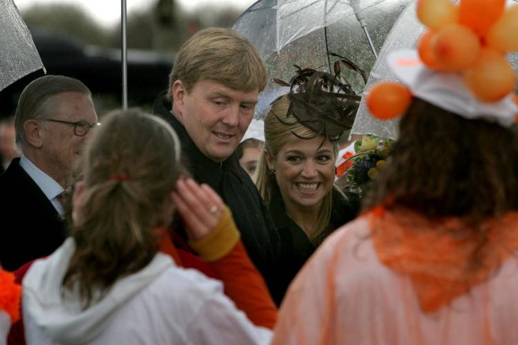 Prins Willem-Alexander en prinses Máxima hebben schik. Ook prinses Annette, prinses Mabel en haar man prins Friso vermaken zich.