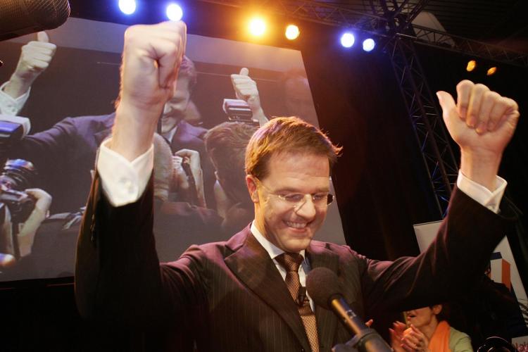 "Ronduit teleurstellend", noemt VVD'er Rutte de uitslag. De VVD daalt van 28 zetels in 2003 naar 22 nu. Het is niet waarschijnlijk dat de VVD mee gaat regeren in het volgende kabinet. - Foto's ANP