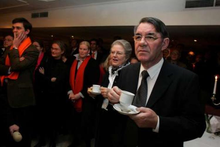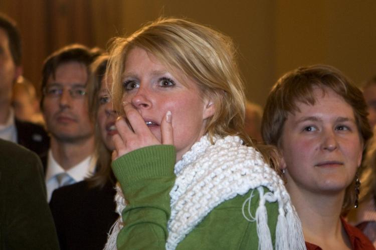 Even voor 23.00 uur verschijnt premier Balkenende, samen met zijn vrouw. Hij moet zich een weg banen door een haag van jongeren, met groene shirts en borden ”Kiezers, bedankt!” Balkenende: „Beste vrienden, we hebben het al zo vaak gezegd: we gaan voor goud, nu hebben we goud! Wat een verkiezingscampagne en wat een resultaat!” - Foto's ANP