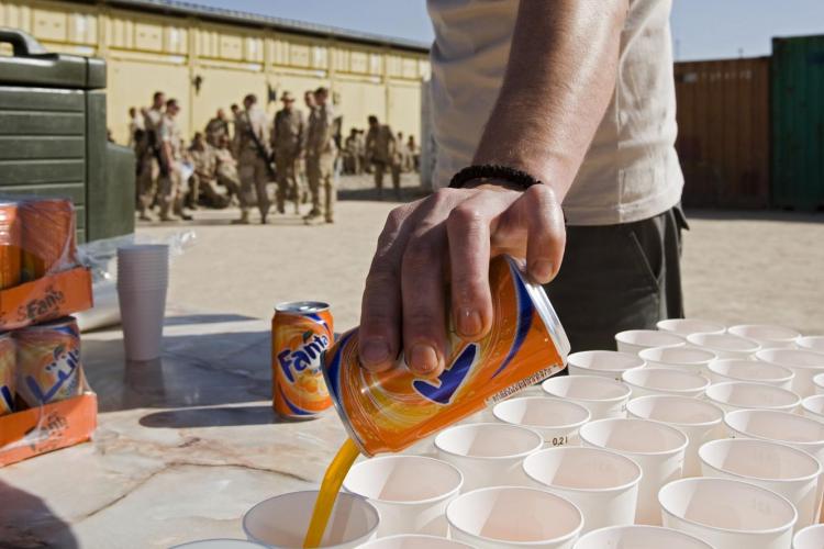 WOENSDAG - Een groep militairen in Uruzgan brengt een dronk uit op Koningin Beatrix ter ere van haar verjaardag. Normaal gaat deze militaire traditie gepaard met Oranjebitter, maar omdat de Nederlandse militairen tijdens hun missie in Afghanistan geen alcohol mogen drinken, wordt er limonade geschonken.