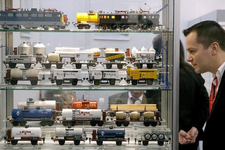 WOENSDAG - Een bezoeker van de speelgoedbeurs Spielwarenmesse in het Duitse Neurenberg bewondert modeltreintjes in een vitrine. Met 2767 exposanten uit zestig landen is de beurs op dit gebied een van de grootste van Europa.