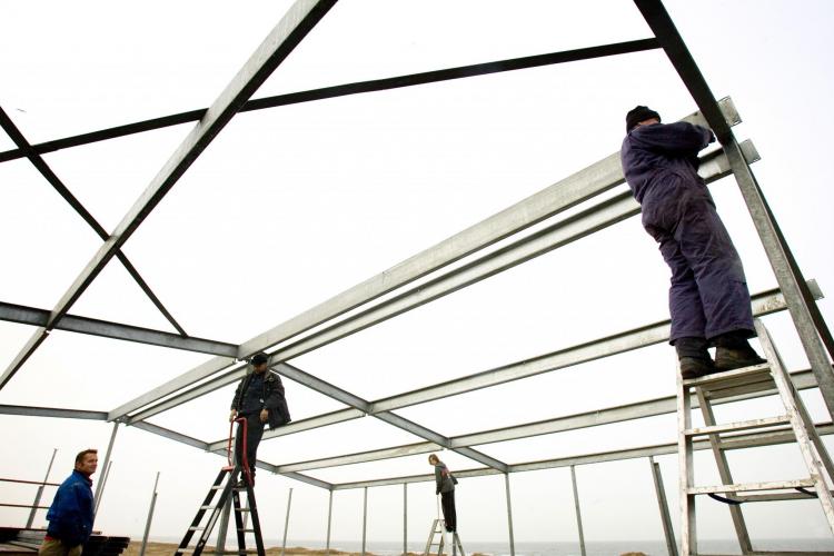VRIJDAG - Op het strand van Zandvoort wordt alvast een begin gemaakt met de opbouw van strandtenten voor het zomerseizoen.