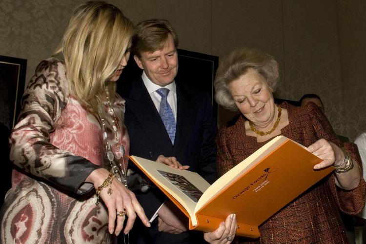 VRIJDAG - Prins Willem-Alexander en prinses Máxima overhandigen koningin Beatrix een jubileumboek van het Oranje Fonds dat vijf jaar bestaat. Het koninklijk stel is beschermpaar van het fonds, dat opkomt voor kwetsbare groepen in de samenleving.