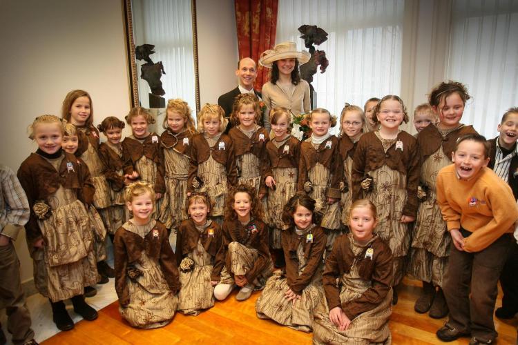 WOENSDAG - Onderwijzeres Karlien van der Wal van de Rehotbothschool in Kootwijkerbroek is getrouwd. De achttien meisjes uit haar klas dragen allemaal dezelfde bruidsjurken, gemaakt door de moeders. De juf trouwde met Evert van de Brink, bedrijfsleider van supermarkt Golff in Kootwijkerbroek.