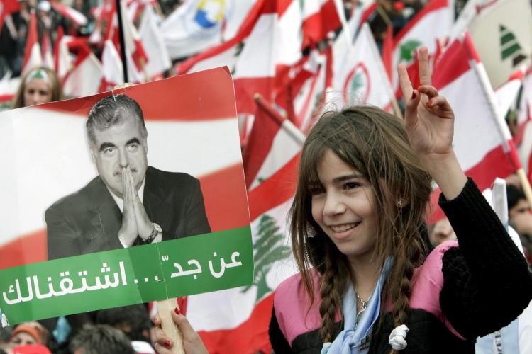 WOENSDAG - Duizenden Libanezen herdenken in het centrum van Beiroet de moord op oud premier Rafik Hariri, precies twee jaar geleden.