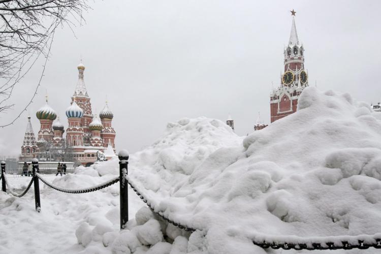 VRIJDAG - Na een ongewoon zachte eerste helft van de winter is het dan toch zover in Rusland: een dik pak sneeuw in Moskou. Dat levert vanaf het Rode Plein gezien mooie plaatjes op.