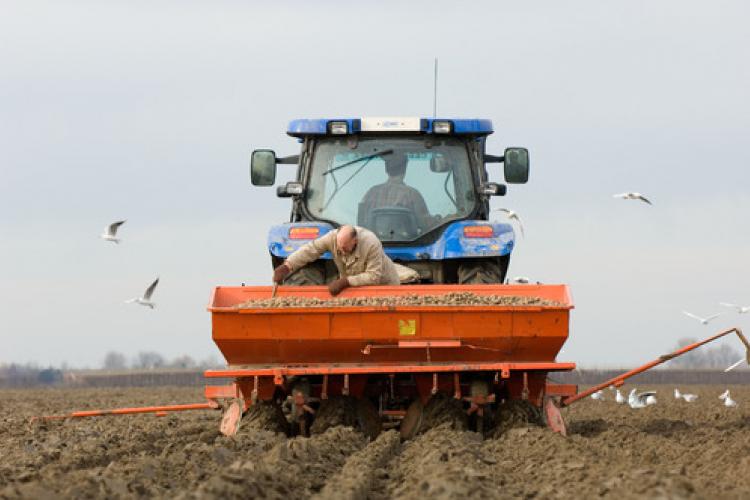 ZATERDAG - Jaap van Rossum en zijn 80 jarige vader poten alvast aardappels. Volgens Van Rossum is de kans niet groot dat het nog streng gaat vriezen, daarom neemt hij het risico om het pootgoed nu al in de grond te stoppen.