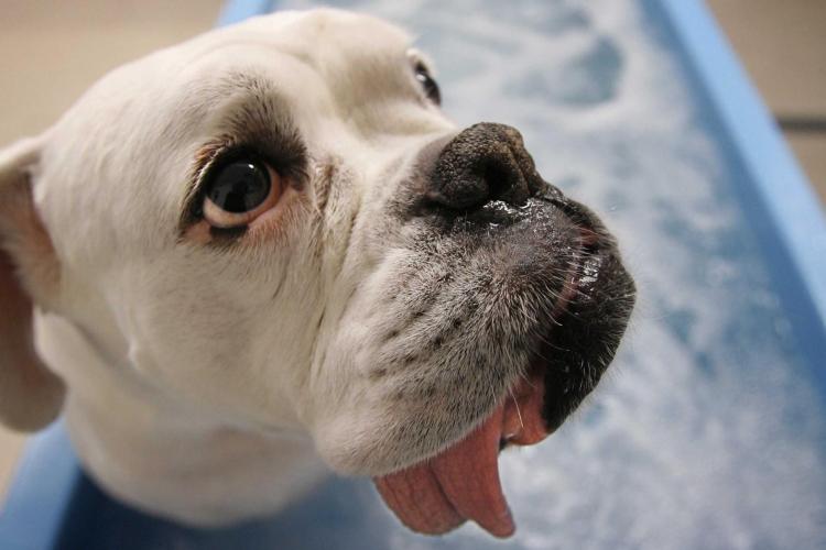 DONDERDAG - Het is de eerste keer even wennen, maar de tweede keer vinden ze het heerlijk. Dat zegt dierkundig ingenieur Mara van Dongeren over honden die voor het eerst in het bubbelbad gaan. In haar hydrotherapiecentrum in Ridderkerk warmen de honden de spieren op in een bubbelbad voordat ze in het zwembad aan hun oefeningen beginnen voor de behandeling voor artrose of heupproblemen.