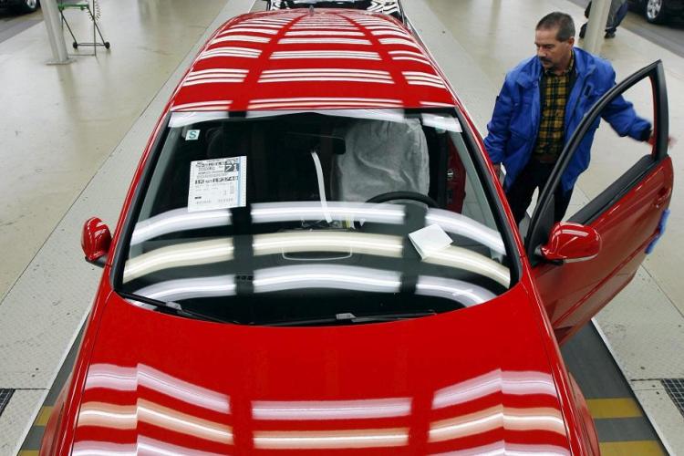 VRIJDAG - Een medewerker van de Duitse autofabrikant Volkswagen (VW) voert de laatste controle uit bij een Golf 5. De jaarcijfers zijn beter dan verwacht: de omzet in 2006 bedroeg 104,9 miljard euro.
