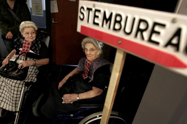 WOENSDAG - In Spakenburg stemmen twee vrouwen in klederdracht voor de Provinciale Statenverkiezingen. De SP is de winnaar met 12 zetels. De woensdag gekozen leden van de Provinciale Staten kiezen op 29 mei een nieuwe Eerste Kamer.
