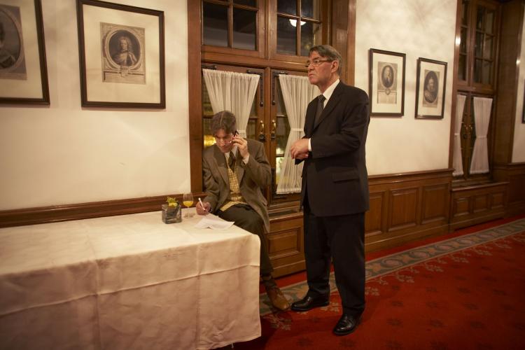 DONDERDAG – De Friese commissaris van de Koningin, Nijpels (l.), test in het provinciehuis in Leeuwarden het eerste Friese kievitsei op versheid. De 37-jarige Christiaan Noordhuis uit Bolsward vond het ei bij Spannenburg.