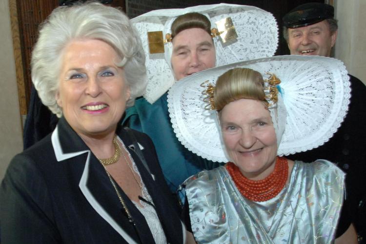VRIJDAG – Vrouwen in Zeeuwse klederdracht heten voormalig minister Peijs welkom in Middelburg. Peijs is de nieuwe commissaris van de Koningin in Zeeland.