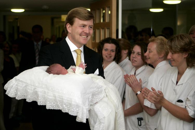 Koningin Beatrix komt meteen naar het ziekenhuis om haar nieuwe kleindochter te bewonderen.