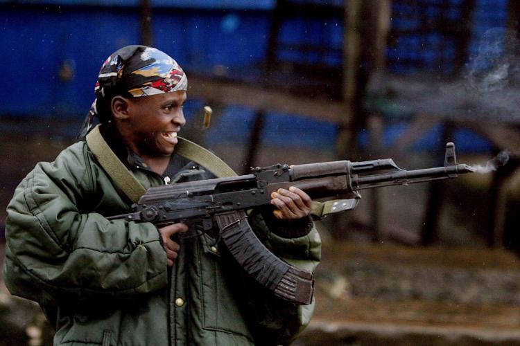 Hij was nog jong toen hij al bloed aan zijn handen had. Jean-François (foto) werd kindsoldaat op z’n zestiende. Van de ene op de andere dag kreeg hij een wapen in z’n handen gedrukt en toen was-ie soldaat. „De eerste paar keer is het moeilijk om mensen te doden. Daarna gaat het steeds gemakkelijker.” - Foto’s RD, ANP, Warchild.nl. (De personen op de foto komen niet overeen met die in de tekst.)