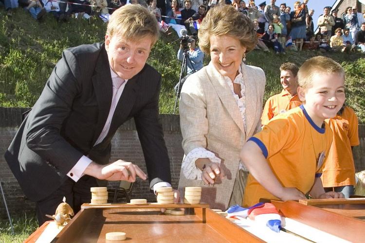 Een potje sjoelen met prins Willem-Alexander en prinses Margriet.