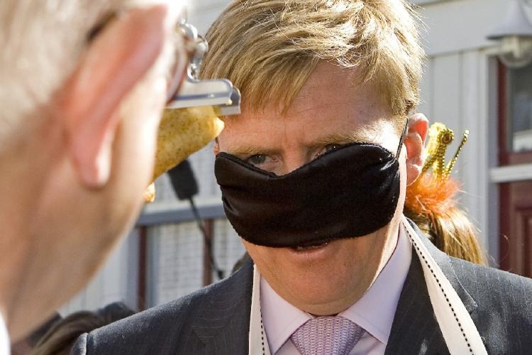 Prins Willem-Alexander met een vervaarlijk masker.