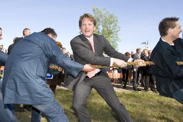 Een touwtrekkende prins Pieter-Christiaan.