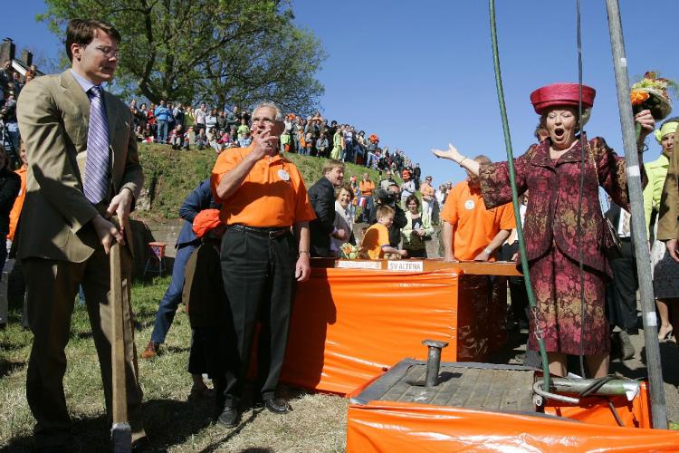 De vestingwallen van Woudrichem geven het publiek goed zicht op de activiteiten van de koninklijke familie. - Foto RD, Henk Visscher