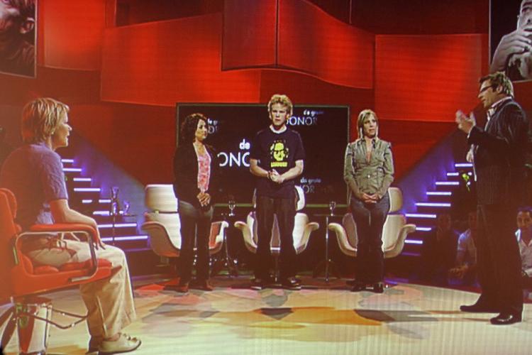 Vanuit je luie stoel sms’en welke patiënt een nieuwe nier krijgt; dat was de bedoeling van De Grote Donorshow die tv-omroep BNN vrijdag uitzond. Veel politici en media reageerden verontwaardigd op de show. Maar het programma nam een heel andere wending. - Foto's ANP en BNN