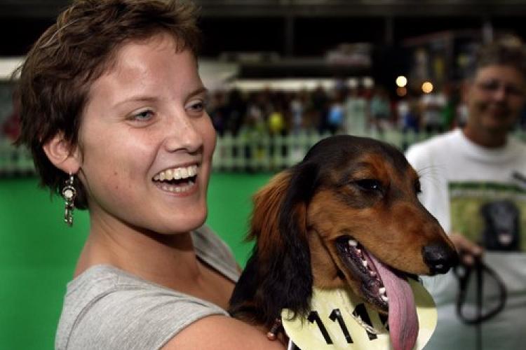 MAANDAG - Stephanie uit Waalwijk poseert met Morris, het winnende dier van de verkiezing van de leukste hond in Nederland tijdens de Nationale Huisdierendagen in de Amsterdamse RAI. - Foto's ANP/RD/EPA