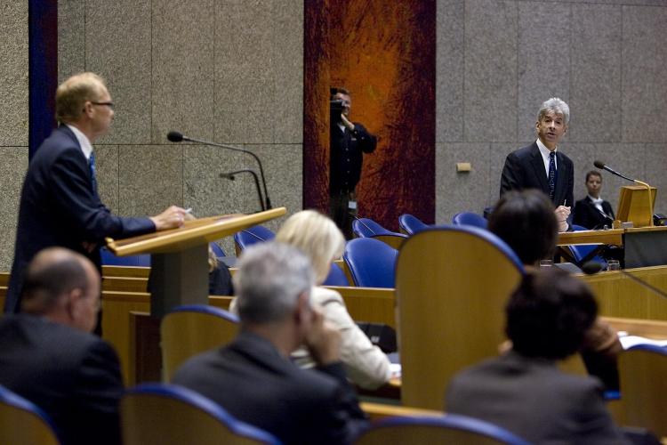 DINSDAG - CDA Tweede Kamerlid Atsma (l.) vraagt in het wekelijkse vragenuurtje aan minister Plasterk van Onderwijs Cultuur en Wetenschap (r.) een verbod op De Grote Donorshow van BNN. In die show, denkt dinsdag iedereen, krijgt de ongeneeslijk zieke Lisa (37) de keuze aan wie van de drie jonge nierpatiëntjes zij het liefst een nier afstaat. De kijkers kunnen haar adviseren door te sms en.