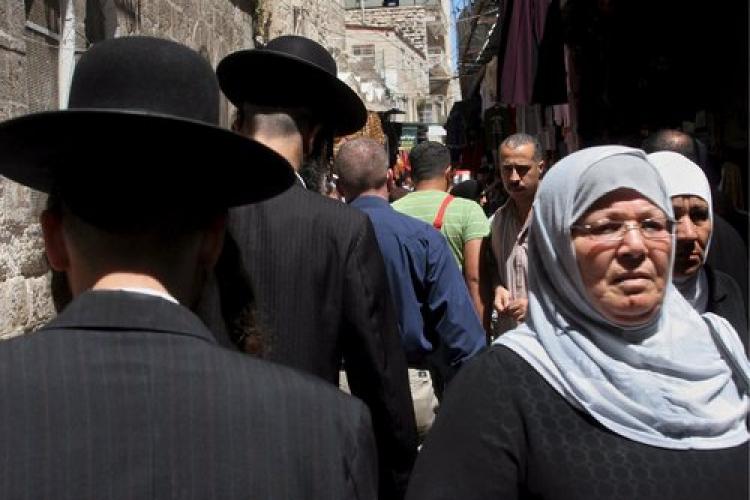 WOENSDAG - Palestijnse vrouwen en orthodox Joodse mannen passeren elkaar in de smalle straatjes van de Oude Stad van Jeruzalem. Israël herdenkt dezer dagen de Zesdaagse Oorlog van juni 1967, die leidde tot de hereniging van Jeruzalem.