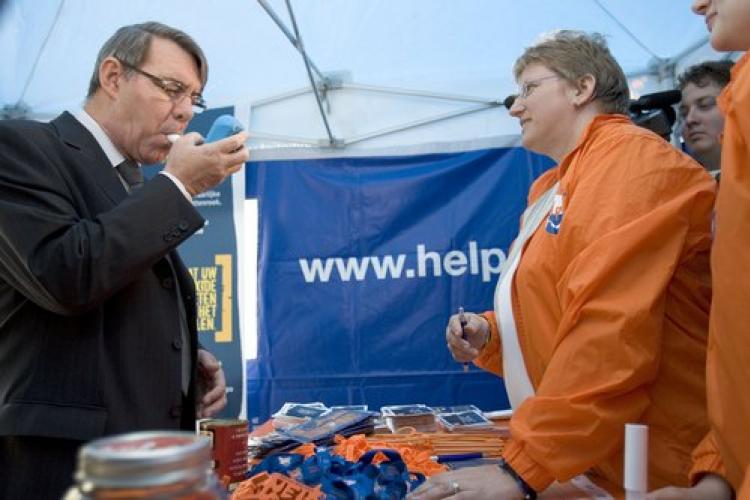 DONDERDAG - SGP-kamerlid Van der Vlies blaast z’n longen leeg. Tijdens de Wereld Niet Roken Dag kunnen Kamerleden hun longen testen. De Europese niet rokencampagne HELP nodigde alle Tweede Kamerleden uit voor een koolmonoxidelongtest.